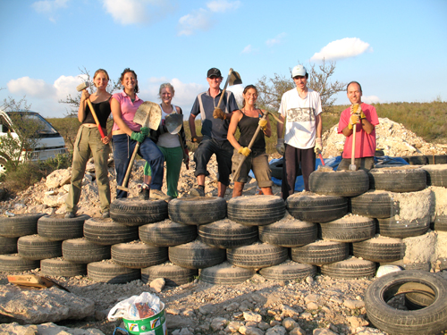 2 & 3 Nov 07So closeFriday 2nd November and we're so close to finishing the walls for the main hut area. 5 volunteers from Sunseed and Santi from Madrid came to help. We flew ahead and finished 14 tyres.