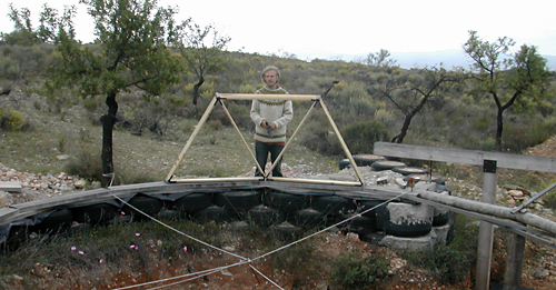 24 April 11A weeks worth of workDave met Theo, a fellow Earthshipper from Sweden, in Sorbas and they both made their way to the 'ship to spend a week getting that darned roof frame finished. If the weather had been more forgiving it would've been done, as it was they did a stirling job in between torrential bouts of rain. Theo has been woofing in the Alpujaras and has been working on an Earthship in Sweden. They're hoping to be ready to put the roof on this summer so a spot of roofing with us was a good learning experience for him - well we hope it was. Below shows how the roof frame spread across as the week went on...