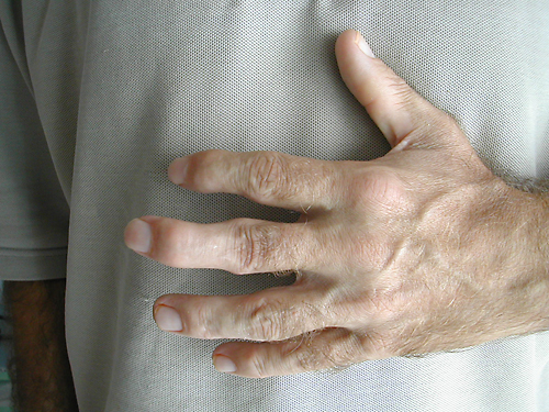Finger lickin' goodAn update on Dave's fingers for all you kind souls who sent him best wishes and healing thoughts. It's 10 months since the accident and, as you can see, they've healed very well and bend nearly all the way. He has sensation back in all but a few areas. Strangely, the index finger has healed better than the middle finger. If you remember, the index finger was in danger of being amputated for a while after the accident. The middle finger, although healed doesn't straighten or bend fully. We have an appointment with the trauma specialist this week to see if the tendons need shortening slightly. If you can't remember what they were like after the accident, brace yourselves and take a peek here